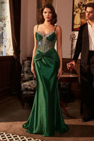 This fitted dress features a striking embellished neckline and delicate thin straps, complemented by a gathered waistline that accentuates its silhouette. The sheer bodice and intricately beaded top bring a touch of refined elegance, while the stretch satin fabric offers a comfortable and flattering fit. Ideal for formal events, prom, or black-tie gatherings, this fit-and-flare bodycon design radiates timeless sophistication.